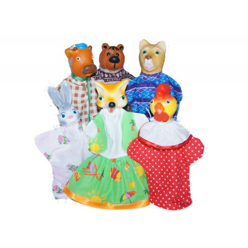 В комплекте: заяц, собака, бык, лиса, медведь, петух.
